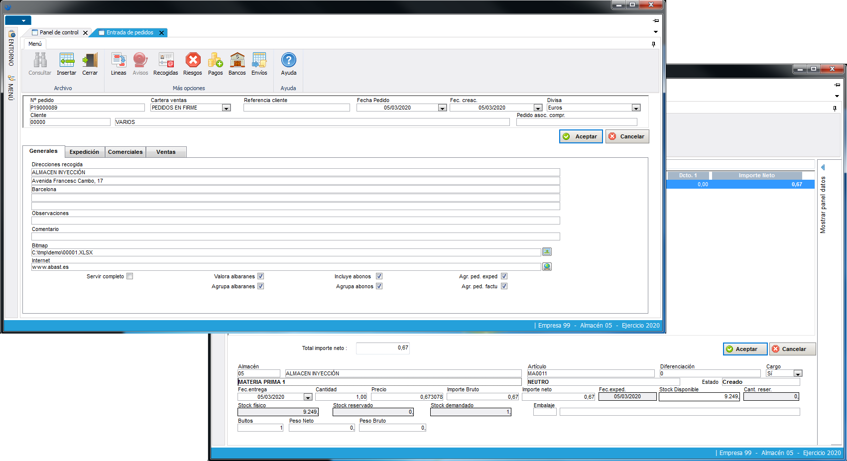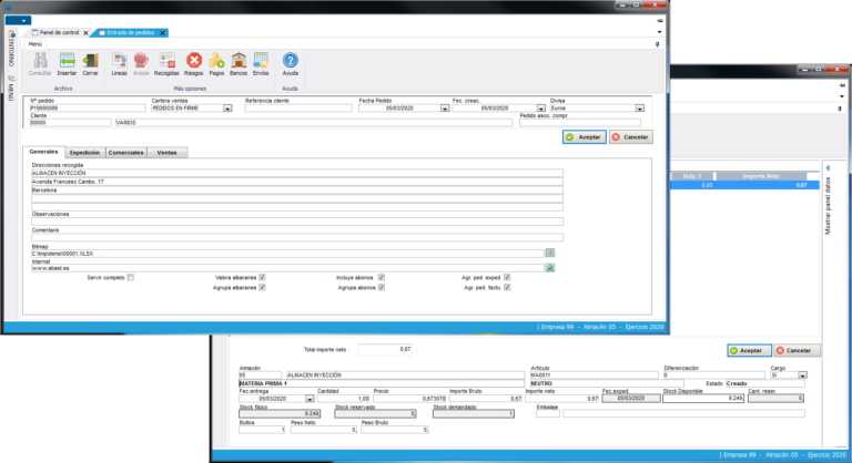 Los pedidos se pueden generar  manualmente, o como consecuencia de la aprobación de una oferta. En ambos casos muestra inicialmente toda una serie de datos ya introducidos desde otros procesos (datos de clientes, promociones, formas de pago, etc.) evitando de esta forma su introducción. También informa si hay alguna incidencia vigente con este cliente. Al generar las líneas, los precios aparecen de forma inmediata, siguiendo la gestión con productos de regalo asociadas se generan las líneas sin cargo de forma automática. Los pedidos pueden ser tanto abiertos como cerrados. Los pedidos abiertos están pensados para acuerdos contractuales que se hayan negociado con los clientes en el tiempo, de forma que las entregas de material se realizarán atendiendo a los acuerdos suscritos. En los pedidos cerrados, las entregas se efectuarán atendiendo a una fecha establecida conjuntamente con el cliente.