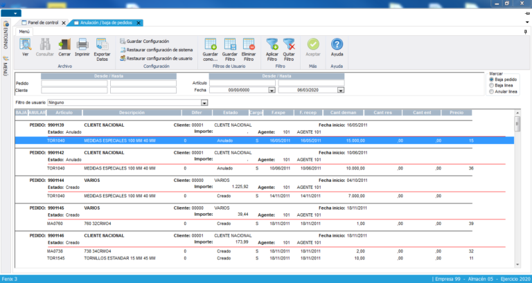 Para una mejor organización, los pedidos se distribuyen por carteras de venta (retenidos, urgentes, etc.), con características definidas (facturables, disponibles, expedibles, control riesgo, etc.), lo que va a permitir clasificar los pedidos según su situación.