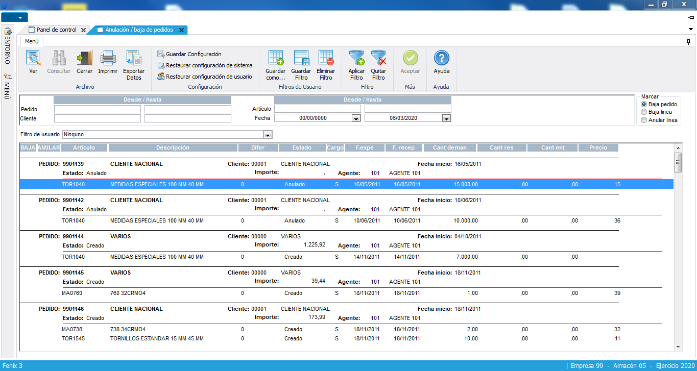 El sistema proporcionará las consultas y listados necesarios para el control y seguimiento de los pedidos.
