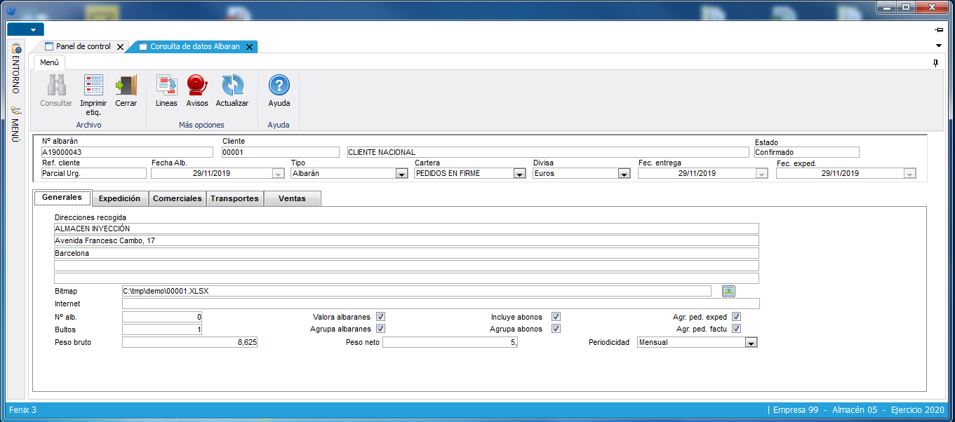 En el momento de efectuar la expedición tiene en cuenta los días de entrega por parte del transportista, el calendario del cliente, la agencia de transportes que interviene con los costes asociados del envío, etc. Se controlarán además los pesos totales brutos y netos del albarán, confeccionando así el packing list real según las capacidades de los transportes que intervienen. Cuando las expediciones parten de pedidos abiertos, el sistema EDI maneja el AVIEXP como método de aviso de las mismas por parte del cliente. Todo el proceso de expedición se integra con el módulo logístico, al generar de forma automática los movimientos de entrada y de salida de almacén asociados a los tipos de movimientos.