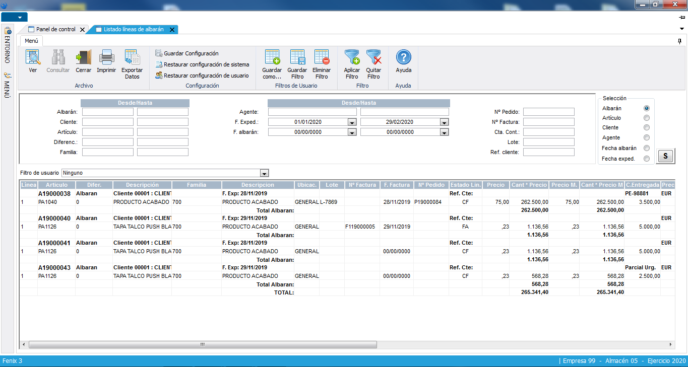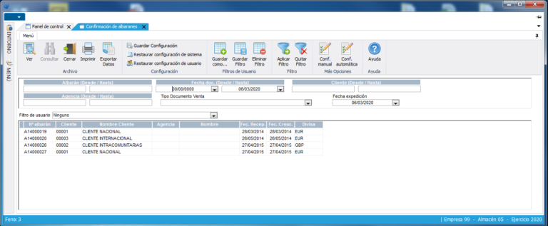 El sistema proporciona las consultas y listados necesarios para el control y seguimiento de las expediciones.