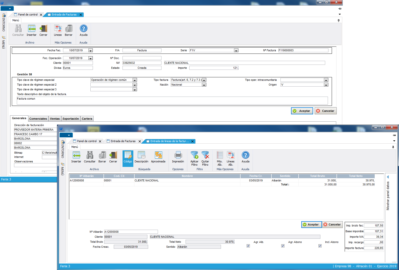 Entrada de facturas.