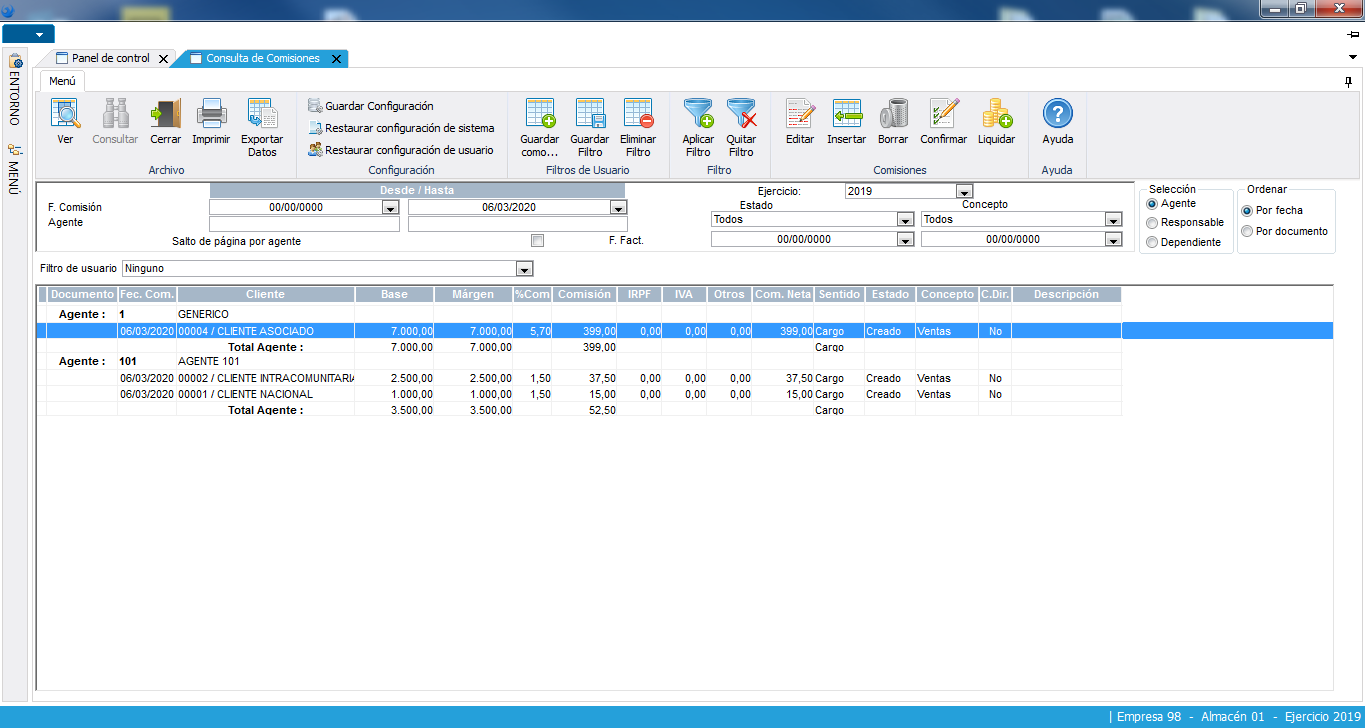 Sistema abierto de tipos de comisiones pudiéndose establecer incentivos globales, por familias de producto, producto, escalado por importes, sobre importes facturados o por el margen obtenido en la venta. Imputación automática de comisiones a los representantes, dependientes y sus responsables, permitiendo su mantenimiento manual para entrega de anticipos o premios procediendo posteriormente a la liquidación y contabilización.