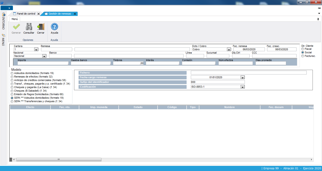 Entrada de cobros, pagos e impagos.