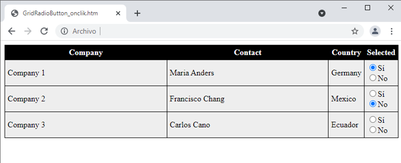 De esta manera el navegador solo tiene un único Evento en memoria y siendo este suficiente, para gestionar todos los Radio Buttons del listado.