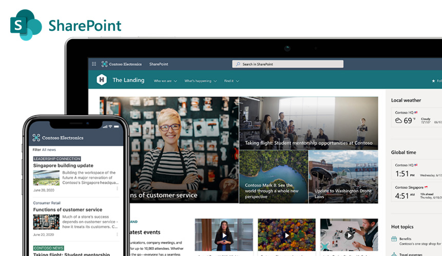 SharePoint es una plataforma de colaboración empresarial de Microsoft que se encuentra dentro de la suite de Microsoft 365. Esta solución ha revolucionado la colaboración en los equipos de las organizaciones, permitiéndoles compartir documentos, administrar contenidos, colaborar en proyectos y construir intranets personalizadas y seguras. De este modo, se fomenta el trabajo en equipo facilitando almacenar, organizar, compartir y acceder a información desde cualquier dispositivo y lugar.