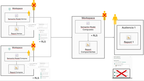 Uno de los aspectos clave en Power BI es la seguridad. Los Modelos Semánticos Compuestos mantienen la seguridad a nivel de fila (RLS) establecida en los modelos originales. Esto garantiza que los usuarios solo accedan a los datos que les corresponden, asegurando la privacidad y el cumplimiento normativo dentro de la empresa.