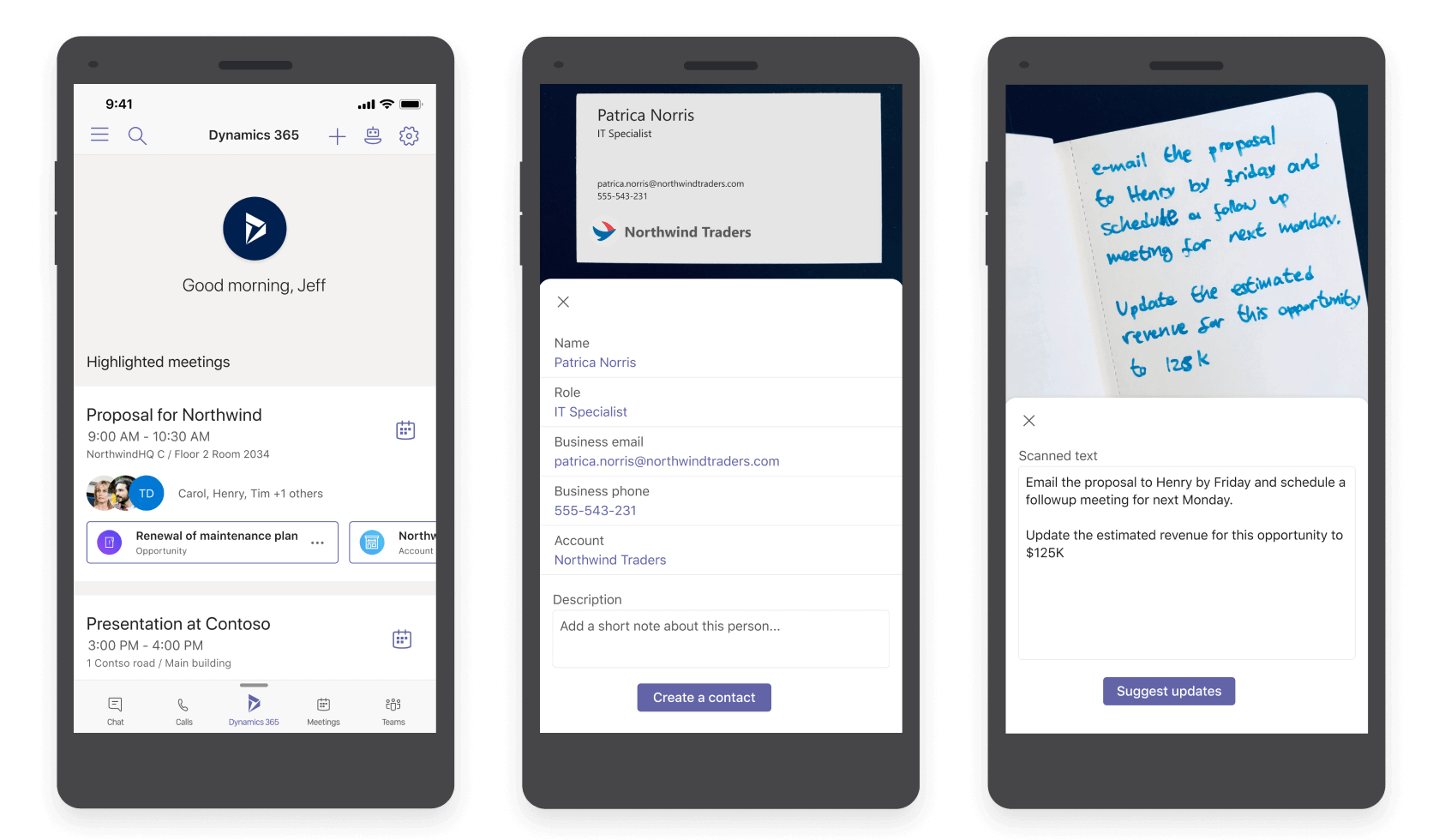 Redueixi l’entrada manual de dades escanejant i convertint la informació de la targeta de visita en registres nous amb Dynamics 365.