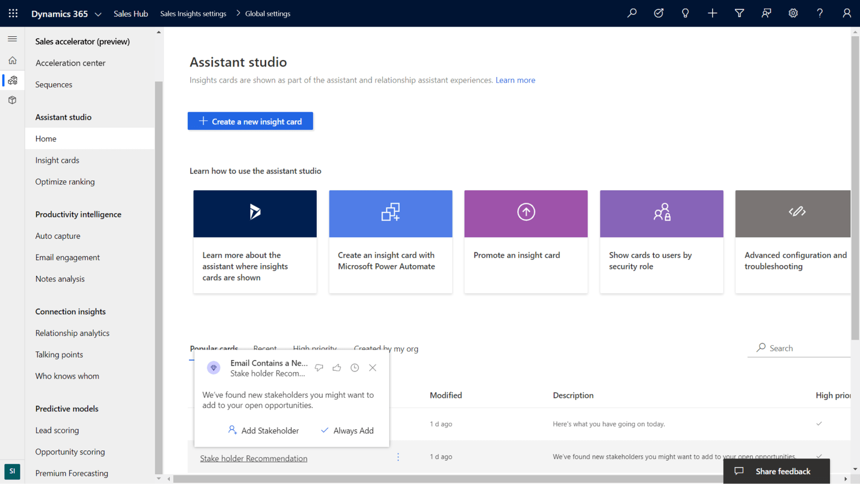 Faciliti de forma senzilla coneixements al seu equip de vendes amb IA integrada. Personalitzi la informació per poder adaptar-la al procés de vendes sense necessitat d’escriure codi.