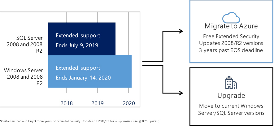 Si necessites de temps addicional per gestionar la transició, aconsegueix tres anys de Extended Security Updates per mantenir les teves càrregues de treball protegides després de la data límit migrant a Azure les teves bases de dades i servidors basats en versions 2008 i 2008 R2. Nosaltres t’ajudarem a fer-ho.