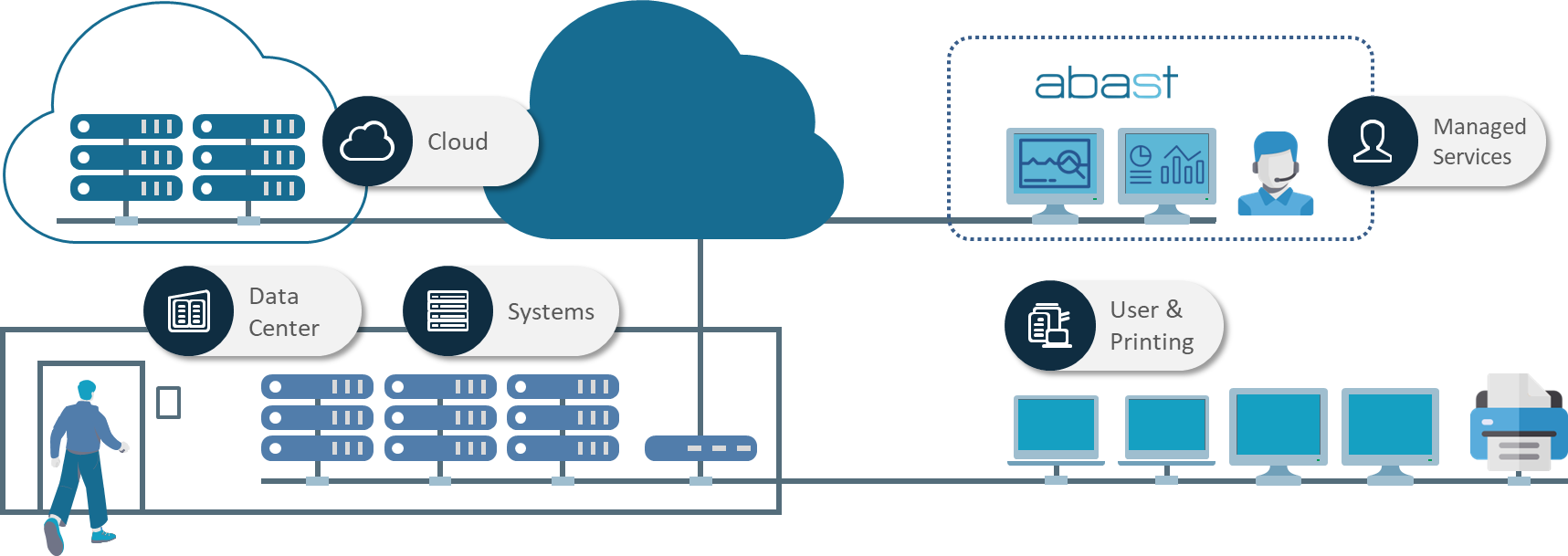 Des de la Branch de Platform Services d’Abast i el seu portfoli de Serveis Cloud, Infraestructura de Sistemes i Datacenter , podem oferir solucions i Serveis de hybrid cloud que integren entorns de núvol públic i privat per optimitzar la gestió de recursos, millorar l’escalabilitat i assegurar una infraestructura flexible i segura. Si vols conèixer més sobre les nostres solucions de hybrid cloud, pots contactar amb nosaltres mitjançant el nostre formulari web.