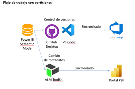 Un cop els canvis estan sincronitzats amb el dipòsit, podeu integrar-los directament amb el portal de Power BI. Durant les nostres proves, identifiquem que algunes metadades, com les relacionades amb la càrrega incremental, no s’emmagatzemen correctament. Això pot provocar la pèrdua de particions i la necessitat de regenerar dades.