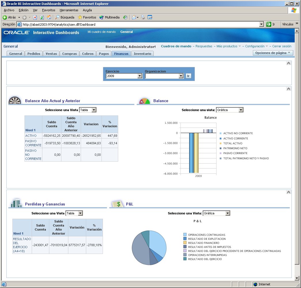 ORA-EBS Dashboard ens proveeix d’una àrea general d’anàlisi i de set sub-àrees específiques centrades en els processos de creació de valor de les organitzacions: comandes, vendes, compres, cobraments, pagaments, Finances i Inventari.