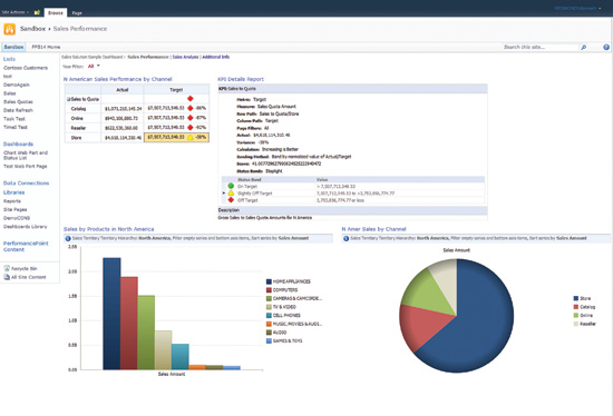 SharePoint Server ofereix un entorn integrat que simplifica l’administració i lliurament d’informes i panells a tota l’organització. La funcionalitat integrada per creació de panells i quadres de comandament inclou filtrat avançat, navegació guiada, anàlisi interactiu i visualitzacions. SQL Server Reporting Services proporciona informes ad hoc d’alta interacció i exploració amb Power View per SharePoint. La distribució i administració es simplifiquen gràcies a l’alta resolució dels informes i la integració total amb SharePoint Server.