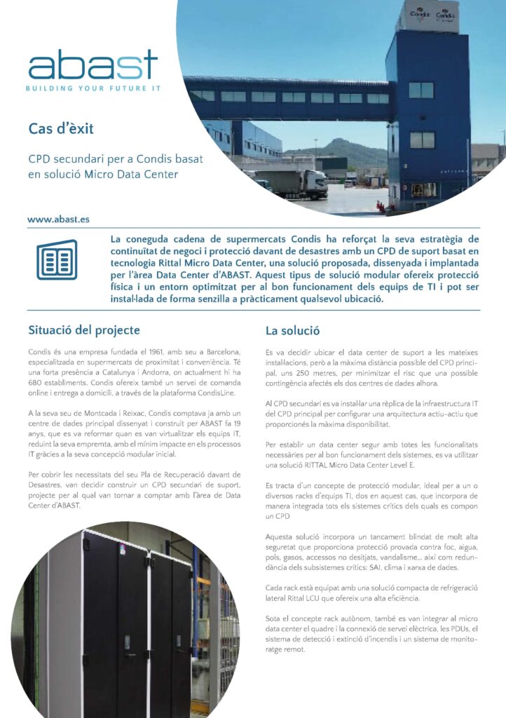 Cas d'èxit CPD secundari per a Condis basat en solució Micro Data Center (PDF)
