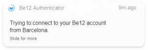Aquesta aplicació li permet autoritzar l’accés de forma senzilla. A més d’introduir un usuari i contrasenya, també se li demanarà permetre l’accés des d’aquesta aplicació, que també ofereix la possibilitat d’utilitzar el lector de petjada del telèfon per entrar a Be12 Code de forma més fàcil i segura.