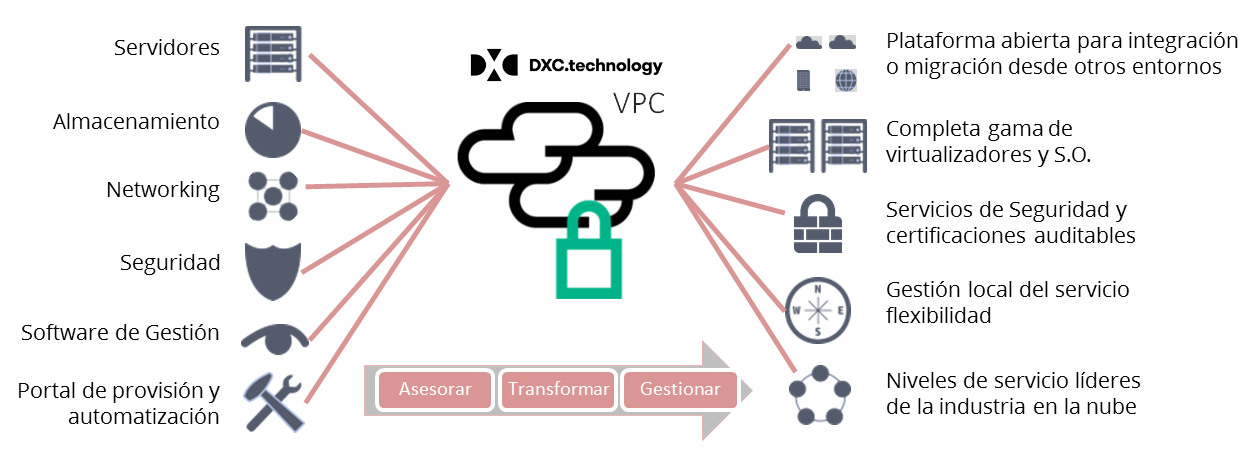 - DXC Technology VPC (abans HPE Helion VPC): La plataforma d’Infraestructura com a Servei (IaaS) professional de Hewlett Packard Enterprise, que a més de flexibilitat i agilitat proporciona els més alts nivells de disponibilitat i seguretat perquè pugui migrar al cloud fins les seves aplicacions més crítiques.