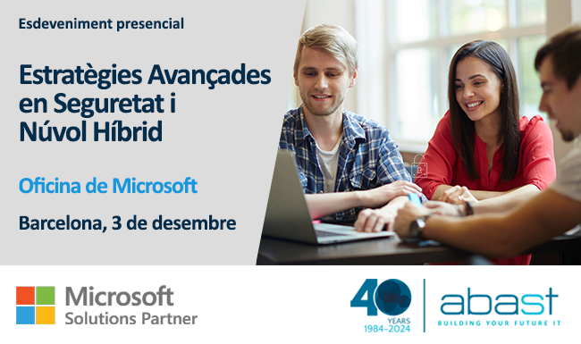 | PONENTS | -Xavier Vilalta, Platform Services Business Director a ABAST -Monica Maganto, Cybersecurity Business Manager a ABAST -Francisco José Fernández Cáceres, Microsoft Security Specialist |
