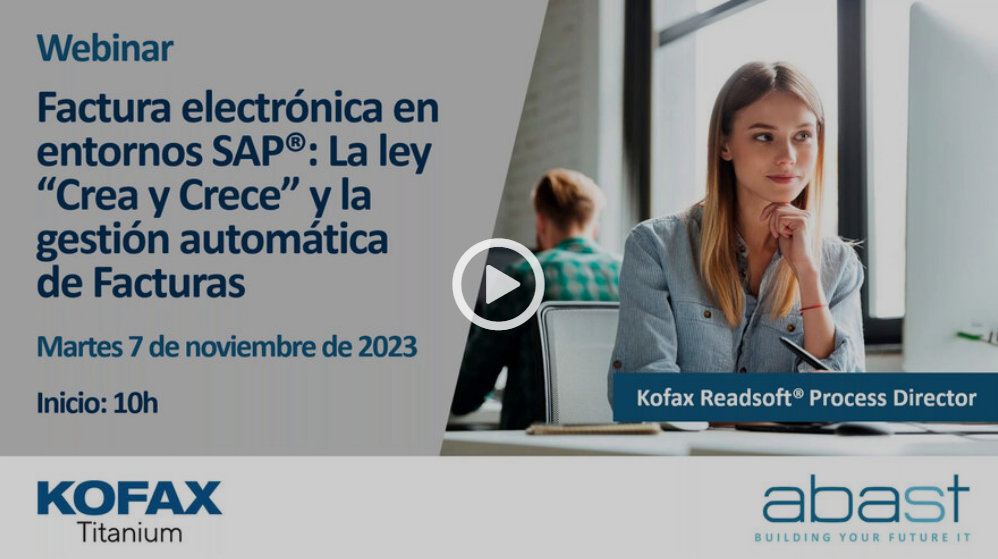 Aquest webinar d’ABAST tracta sobre com automatitzar i optimitzar processos financers com els de comptes a pagar amb solucions Kofax certificades per SAP, que li permetran impulsar la productivitat, reduir costos, augmentar la precisió i visibilitat de les dades i millorar les relacions amb proveïdors i clients, a més, complint amb la nova normativa.
