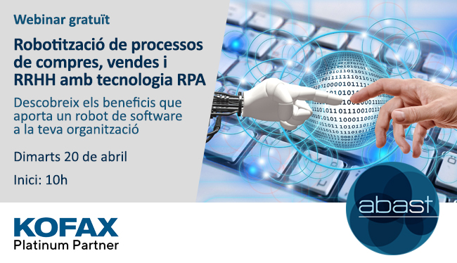 El convidem a aquest webinar en què explicarem com la nova tecnologia RPA aplicada a processos de compres, vendes i RRHH aconsegueix millorar l’eficiència i estalviar costos en aquests departaments.
