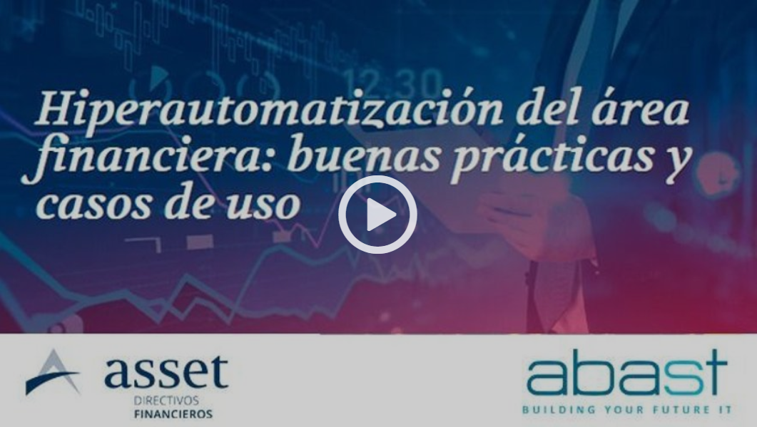 Asset en col·laboració amb Abast presenten aquest seminari web sobre com iniciar (i escalar) l’automatització en l’àrea financera, combinant RPA i IA per a aconseguir resultats ràpids, maximitzar el ROI i assegurar l’eficiència operativa de les nostres labors diàries. Per a això, mostrarem els primers passos clau, així com recomanacions per a desplegar amb èxit la intel·ligència artificial en els processos financers.