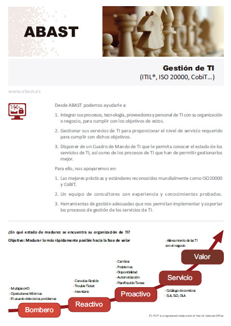 ABAST va ser pionera a Espanya en l’adopció de les millors pràctiques d’ITIL per millorar la gestió dels processos de provisió i suport de TI dels seus clients.