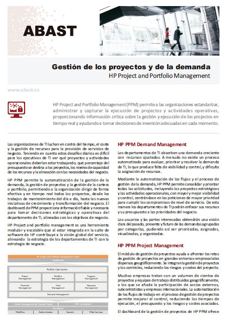 NOTA: Si busques informació sobre HP PPM (HP Project and Portfolio Management) estàs en el lloc correcte. Micro Project and Portfolio Management (PPM) és l’evolució de la solució abans coneguda com HP Project and Portfolio Management o HPE Project and Portfolio Management. Micro Focus va adquirir la divisió HPE PSoftware en 2016, un any després que HP s’hagués separat en dues companyies: Hewlett Packard Enterprise (HPE) i HP Inc (HP). ABAST, que va ser el primer partner d’HP Software a Espanya, actualment continua distribuint i proporcionant serveis per a totes aquestes solucions com Gold Partner de Micro Focus.