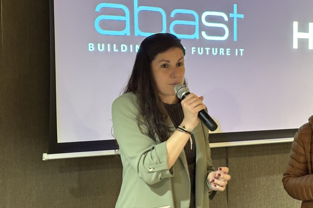 Marina Ariza Prunera, Commercial Sales Manager en HPE, va destacar la llarga trajectòria que uneix HPE i Abast, va agrair la invitació i l’oportunitat de participar a la jornada, i va assenyalar la importància de continuar impulsant iniciatives conjuntes que acostin la innovació tecnològica als clients.