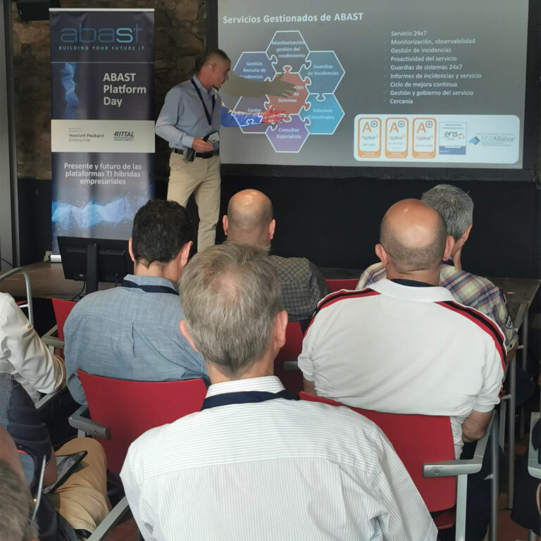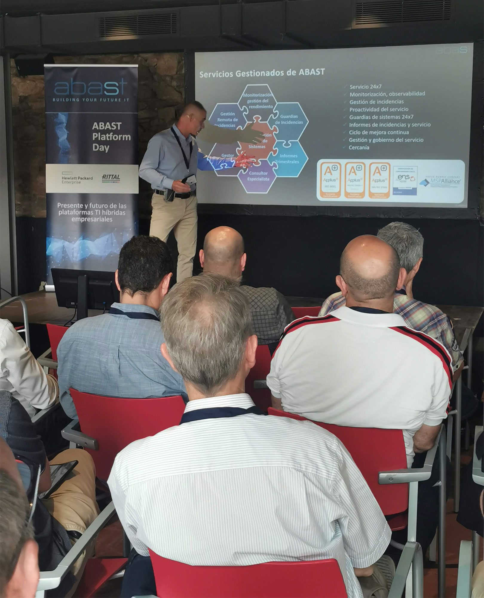 El passat 28 de juny va tenir lloc l’esdeveniment organitzat per parlar sobre la tendència al alça i l’evolució de les infrastructures empresarials de TI híbrides, i ensenyar el que la branch Platform Services d’ABAST pot oferir en solucions i serveis per unes infrastructures TI adaptades a cada organització.