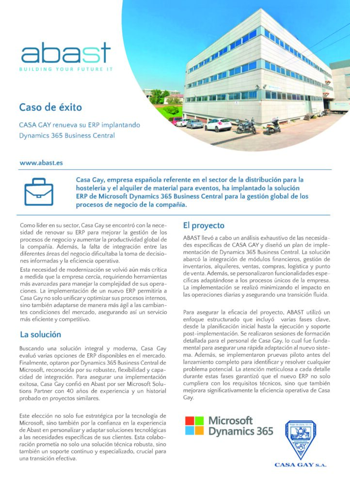 En definitiva, la implementación de Dynamics 365 Business Central, con la ayuda de Abast, ha permitido a CASA GAY no solo mejorar sus operaciones diarias, sino también prepararse para un crecimiento continuo y sostenible en el mercado competitivo actual.