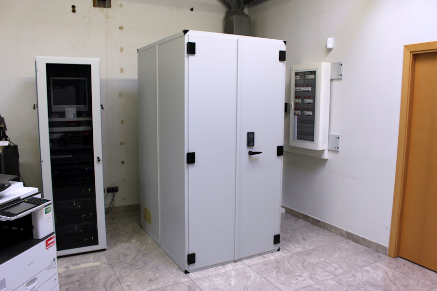 También se incluyó un sistema compacto y automático de protección contra posibles incendios en el interior. Funciona con un sistema de detección mediante la extracción de humos y con extinción activa a través de gas NOVEC-1230, inocuo para personas y equipos informáticos.