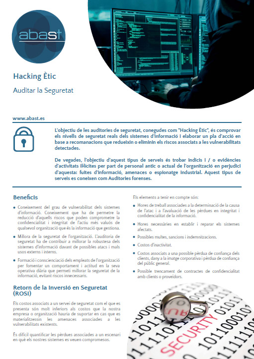 Descargue en formato PDF el Folleto sobre auditorías de seguridad con hacking ético / tests de intrusión