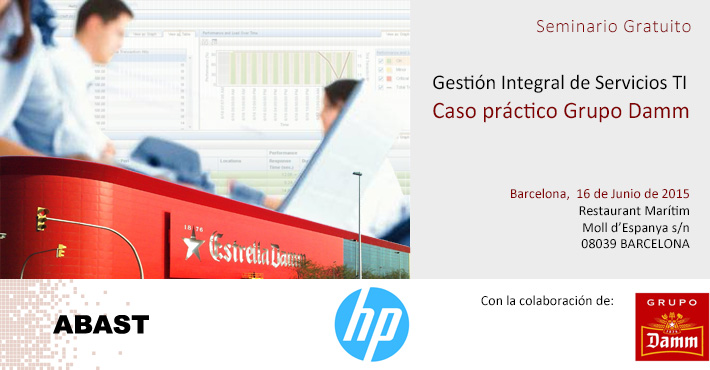 ABAST y HP Software le invitan a una sesión en la que, a través del caso práctico del Grupo Damm, podrá ver un ejemplo de las soluciones que están marcando tendencia para la gestión de los servicios TI y del rendimiento de las aplicaciones empresariales.