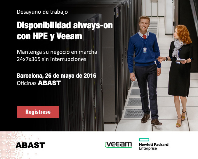 ABAST, HPE y VEEAM le invitan a un Desayuno de Trabajo donde le explicaremos cómo, con la integración de las soluciones de Veeam y HPE, podrá: