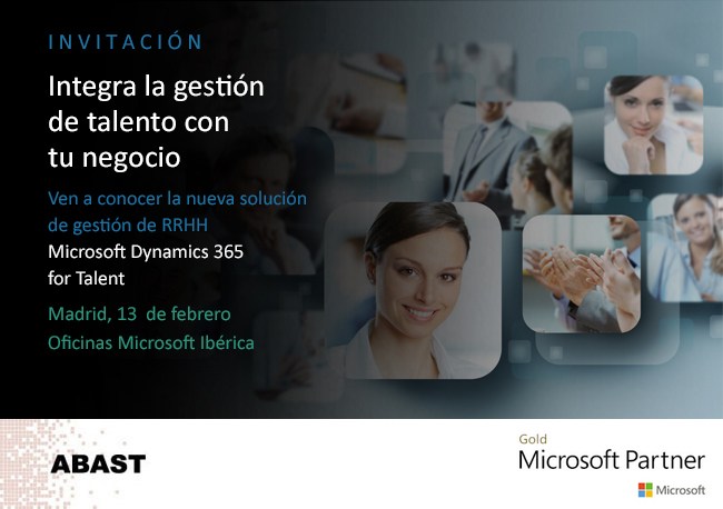 ABAST y Microsoft le invitan a un Desayuno de Trabajo orientado a Responsables de Recursos Humanos y Responsables de TI en el que podrá conocer a fondo esta nueva solución.