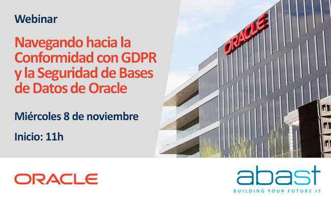 El próximo 8 de noviembre tendrá lugar un webinar indispensable para todos aquellos que buscáis proteger vuestros datos y cumplir con GDPR. Además de contar con la visión de Oracle, contaremos también con la visión de ABAST, gracias a la participación de Eva Climent. BDM & Specialist de Oracle. ABAST.