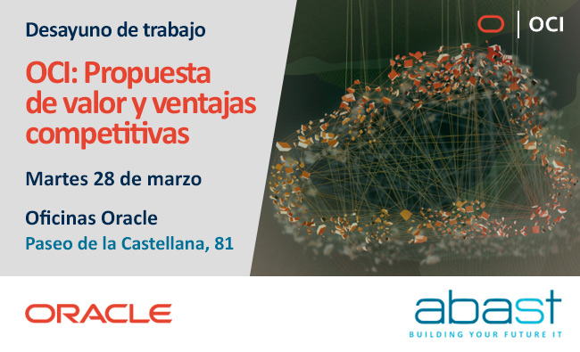 Abast y Oracle te invitan a un desayuno de trabajo en el que veremos como Oracle Cloud Infrastructure (OCI) ofrece una nube pública de nivel empresarial con un alto rendimiento para su negocio. Ha sido diseñada específicamente para ejecutar aplicaciones y bases de datos empresariales, ayudándole a mover de forma segura las cargas de trabajo críticas a la nube, garantizando el tiempo de actividad y el rendimiento.