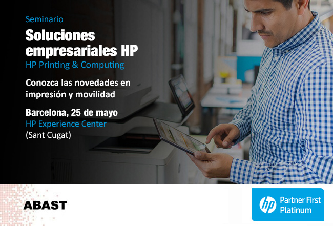 Te invitamos a un seminario en el que podrás descubrir la tecnología más innovadora en soluciones de movilidad empresarial y soluciones de imagen e impresión, así como conocer los beneficios de nuestros Servicios Gestionados de Impresión (MPS). El evento tendrá lugar en las en las instalaciones de HP Sant Cugat, sede mundial de las divisiones de impresión en gran formato y 3D de HP, donde realizaremos una visita al HP Graphics Experience Center, con 4.000 m2 dedicados a exposición y demo de soluciones de impresión.