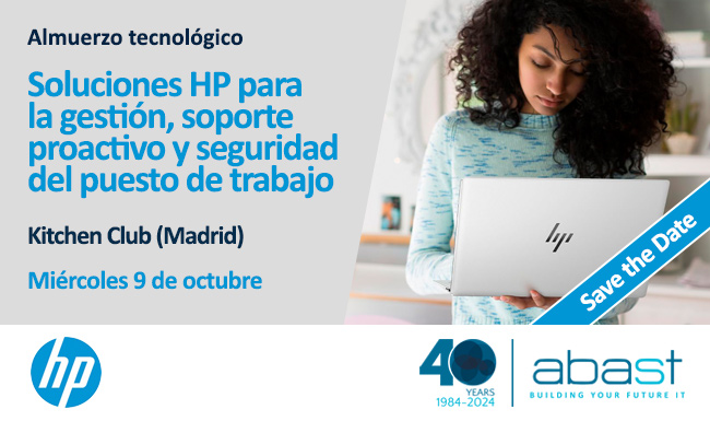 No te pierdas este evento conjunto con HP que realizaremos el 9 de octubre, en el que exploraremos las últimas innovaciones y las soluciones y servicios avanzados que HP ofrece para mejorar la forma en que gestionamos y aseguramos nuestros entornos de trabajo. Un almuerzo tecnológico en el que tendremos también ocasión de conversar y vivir una experiencia gastronómica única, disfrutando de las creaciones elaboradas por los Chefs de Kitchen Club.