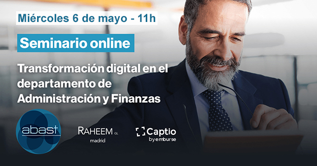 El próximo 6 de mayo, en colaboración con Captio y el Club Financiero y de Negocios Raheem, realizamos un webinar financiero donde hablaremos de digitalización, automatización y movilidad aplicada a procesos administrativos y finanzas.