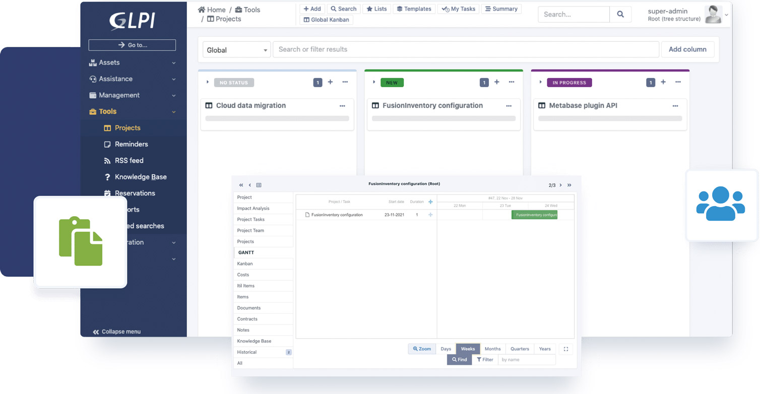 GLPI proporciona todas las herramientas necesarias para la correcta gestión de sus servicios TI