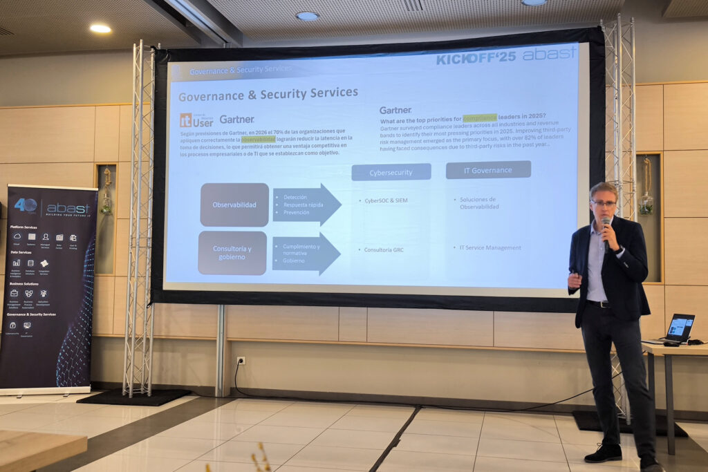 La CEO de Abast, Irene Plaza, inauguró la sesión con el recuerdo de un 2024 lleno de emociones, por la celebración del 40 aniversario, y repleto de éxito al haber conseguido los mejores resultados de su historia. Del mismo modo, compartió la visión estratégica corporativa de 2025, fundamentada en: nuestra orientación customer centric, el engagement con nuestros partners tecnológicos y de negocio, la especialización y experiencia del equipo y el respeto a nuestros principios y valores empresariales.