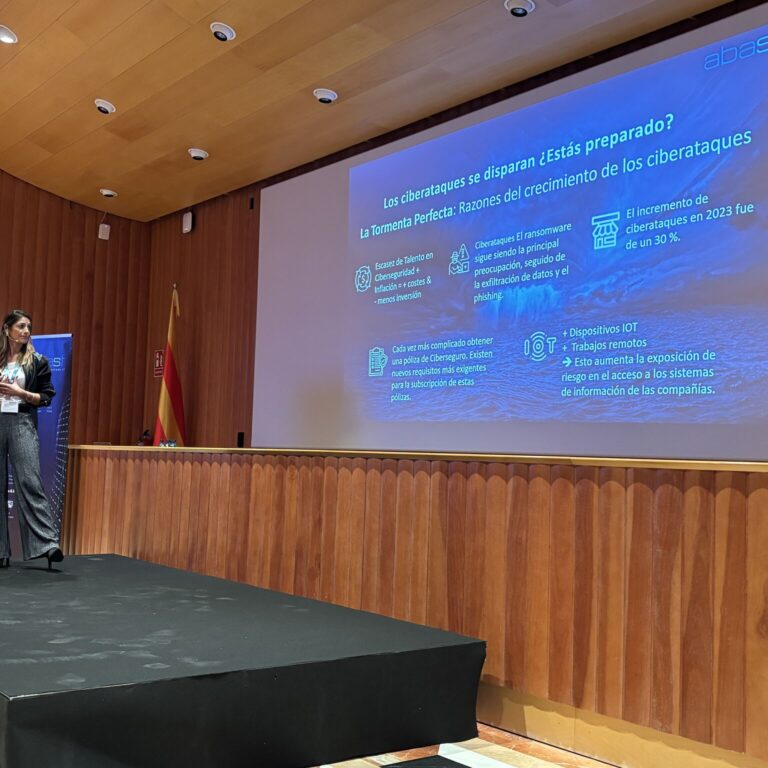 La ciberseguridad fue otro de los temas a tratar en el Abast Data Day, abordado por Mónica Maganto, Business Manager de Ciberseguridad en Abast. Mónica Maganto presentó una visión integral sobre la necesidad creciente de proteger los datos en un entorno normativo cada vez más complejo. Aludió a normativas como NIS2 y DORA, las cuales exigen a las organizaciones mantener altos estándares de protección y respuesta ante incidentes.