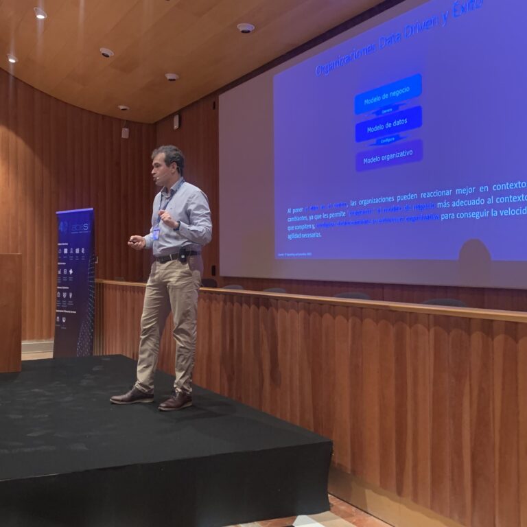 El primer ponente del día fue José Luis Pérez, director de Análisis en Penteo, quien aportó su perspectiva como analista independiente sobre la evolución de la gestión de datos en las empresas. José Luis subrayó que, aunque cada vez más organizaciones están adoptando estrategias de datos, aún existen importantes desafíos relacionados con la integración y la gobernanza. Según el analista, se mantiene la tendencia en las empresas de buscar convertirse en organizaciones data driven, donde los datos impulsan el negocio y son el centro de todas las decisiones estratégicas. Aun así, las conclusiones de los informes presentados mostraban que son necesarias paciencia y perseverancia para el éxito de los proyectos de explotación y análisis del dato, y que es crucial desarrollar no sólo un modelo de datos, si no también impulsar un modelo organizativo y un modelo de negocio alrededor del dato. Hizo hincapié en que “no hay atajos”, pero que las empresas que logren unificar sus datos y aplicar analíticas avanzadas para descubrir nuevas oportunidades de negocio y tomar decisiones acertadas ganarán una ventaja competitiva significativa.