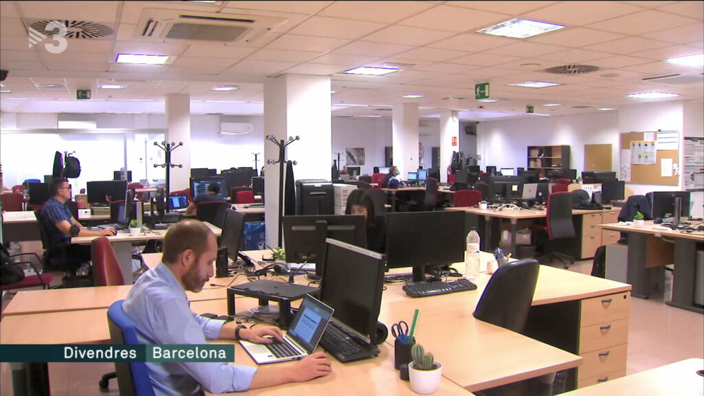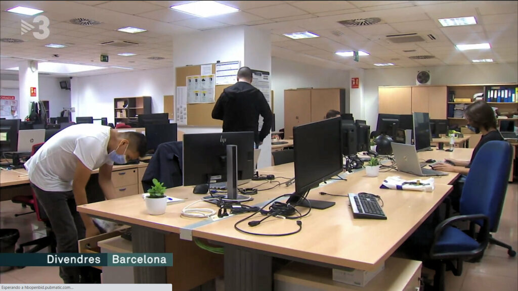 En esta crónica pudieron verse imágenes de las oficinas de ABAST en Barcelona, antes y después de recuperar cierta normalidad en la asistencia presencial de los empleados. Varios compañeros nuestros aparecieron ocupando de nuevo sus puestos de trabajo mientras se explicaba que se había llegado un acuerdo para que los trabajadores pudieran trabajar desde sus casas hasta tres días por semana.
