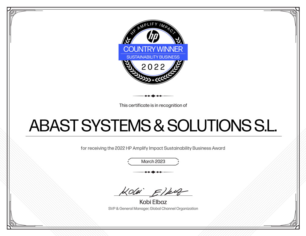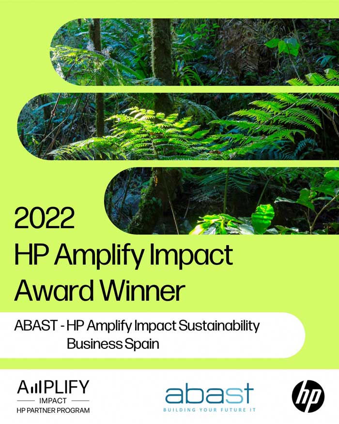 ABAST se unió a finales del 2021 al programa Amplify™ Impact de HP que promueve una mayor implicación en sostenibilidad y acción social en todo su canal de socios, obteniendo la acreditación de Changemaker en mayo de 2022, la máxima categoría dentro de este programa. Ahora ha sido premiado con el galardón Amplify Impact Sustainability Business España para reconocer el trabajo y dedicación de ABAST a la sostenibilidad tanto en proyectos en su organización como en los negocios con sus clientes.