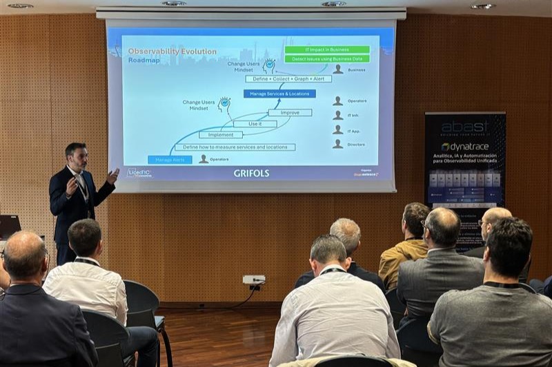 Además, tuvimos el placer de contar con la intervención de Jordi Escribano Blanc, Observability Manager en Grifols, quien presentó su caso de éxito real. Jordi explicó cómo la implantación de la plataforma de Dynatrace por parte de ABAST ha permitido a Grifols evolucionar de una monitorización TI tradicional a una visión integral del estado de los servicios y la experiencia de usuario. Destacó cómo esta solución les ha permitido clasificar y reducir el número de alarmas generadas y detectar la causa raíz de los problemas, adelantándose a posibles incidencias para maximizar la disponibilidad de los servicios TI y los procesos de negocio, aportando así un valor tangible a la empresa.