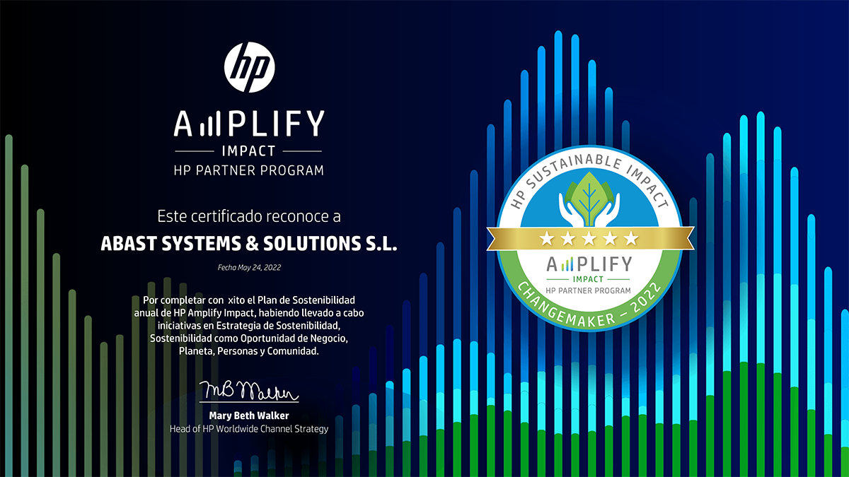 Fruto de este esfuerzo, HP nos comunicó a principios de la semana pasada que ABAST se había convertido en el segundo partner en España en completar todos los objetivos de su plan y conseguir la validación del status de HP Amplify Impact Changemaker.