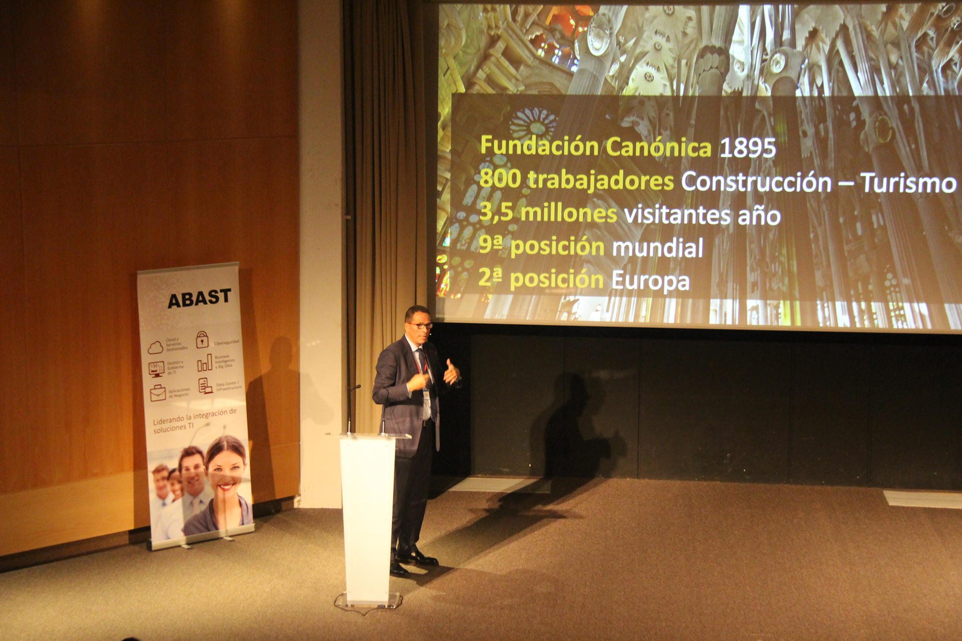 A continuación, como ponente invitado habló Fernando Villa, Director de Métodos y Nuevas Tecnologías de la Junta Constructora de la Sagrada Familia, quien explicó por qué decidieron hacer un Plan de Contingencia TI cuál fue su enfoque. Un proyecto desarrollado en colaboración con ABAST.
