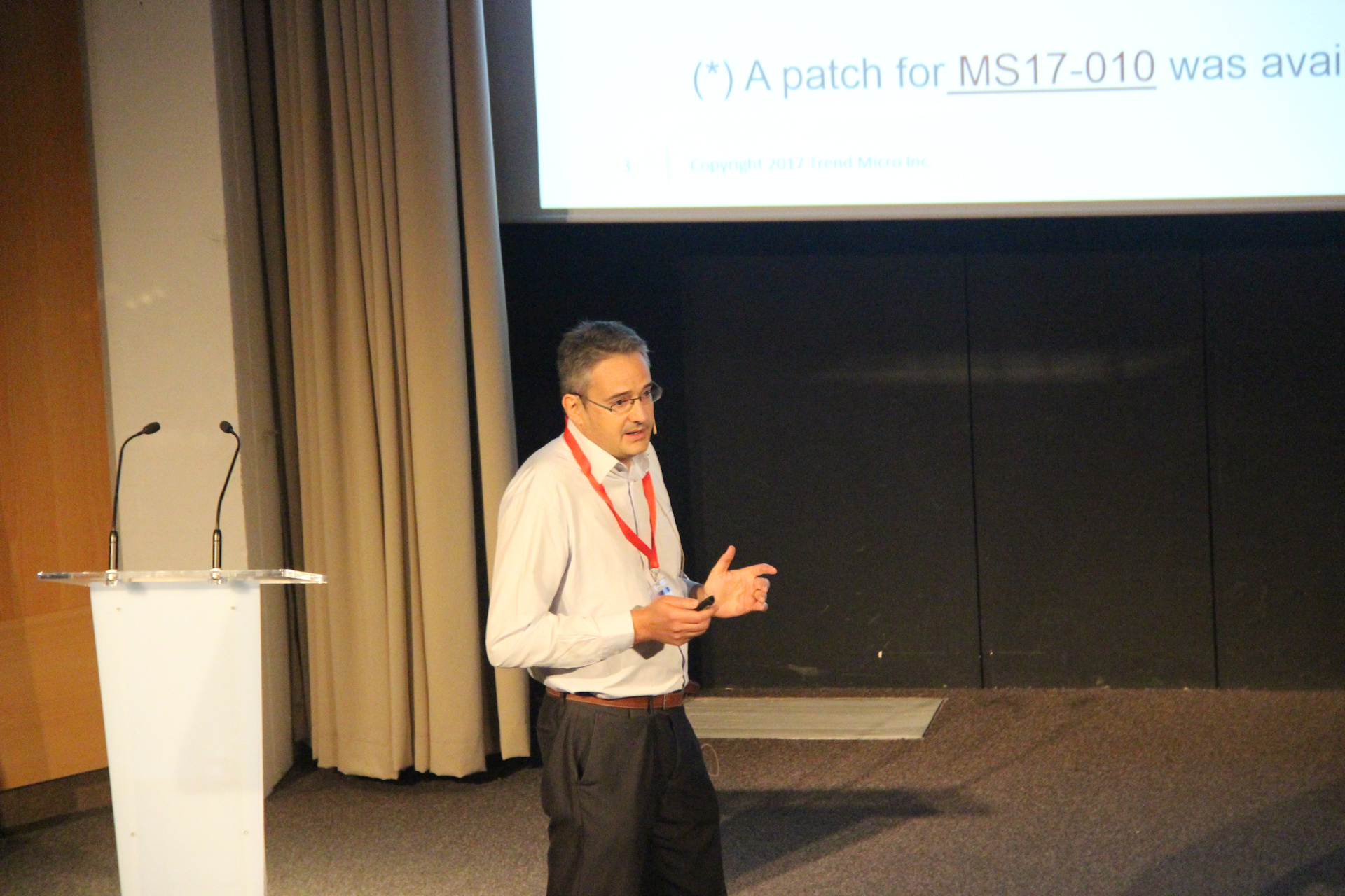 La siguiente charla, titulada “Cómo proteger los centros de datos híbridos frente a las nuevas amenazas”, la dio Vicenç Vila, Regional Account Manager en Trend Micro. Vicenç explicó cómo con Trend Micro Deep Security es posible mantener protegidos los servidores, sean físicos, virtuales o cloud, a través de diferentes técnicas técnicas de seguridad como el parcheo virtual, que previene ataques que aprovechan vulnerabilidades conocidas en equipos no actualizados, o antimalware con o sin agentes.